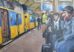 2018Trein rijdt niet. Mensen wachten op de trein totdat hij weer gaat rijden.