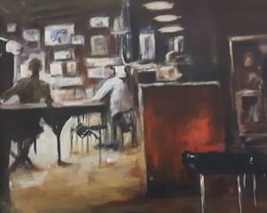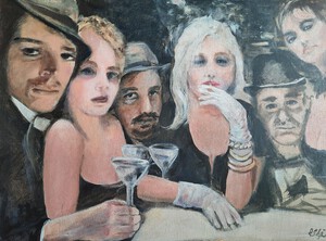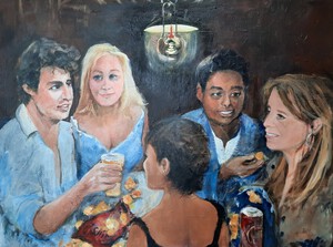 2021Naar Van Goghs aardappeleters, maar hier wordt bier en chips genuttigd.